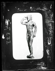 Part of the collection of images, 1906-1910, of the British School at Athens excavations at Sparta, Laconia. The original description in the SPHS register reads: "Bronze trumpeter from Sparta".