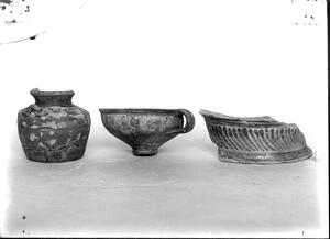 Part of a group of images from the British School at Athens excavations at Palaikastro, Crete in the 1902-1905. The original description in the SPHS negative register reads: "PK dippers".