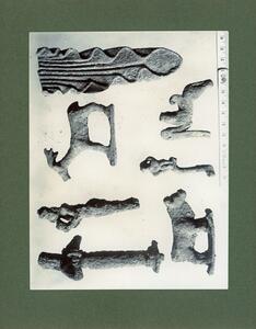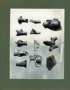 Part of the collection of images, 1906-1910, of the British School at Athens excavations at Sparta, Laconia. The original description in the SPHS register reads: "Sparta: bronze animals".
