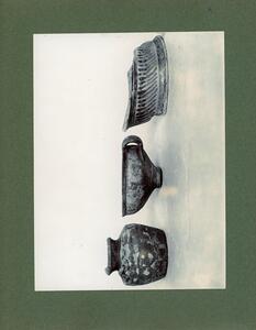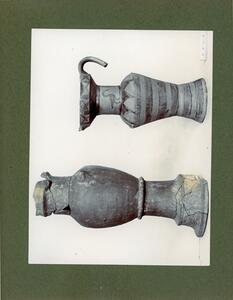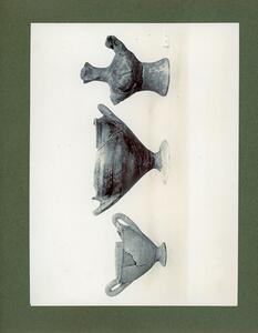 Part of the collection of images, 1906-1910, of the British School at Athens excavations at Sparta, Laconia. The original description in the SPHS register reads: "Sparta: vases with 3 handles: roof ornament".