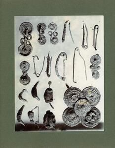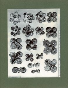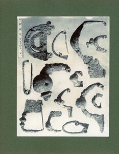 Part of the collection of images, 1906-1910, of the British School at Athens excavations at Sparta, Laconia. The original description in the SPHS register reads: "Sparta: fibulae".