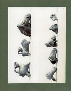 Part of the collection of images, 1906-1910, of the British School at Athens excavations at Sparta, Laconia. The original description in the SPHS register reads: "Sparta: heads of animals &c.".