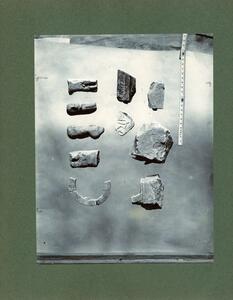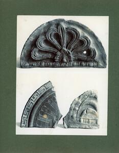 Part of the collection of images, 1906-1910, of the British School at Athens excavations at Sparta, Laconia. The original description in the SPHS register reads: "Sparta: TC roof ornaments".