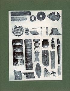 Part of the collection of images, 1906-1910, of the British School at Athens excavations at Sparta, Laconia. The original description in the SPHS register reads: "Sparta: miscellaneous small bronze objects".