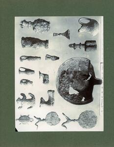 Part of the collection of images, 1906-1910, of the British School at Athens excavations at Sparta, Laconia. The original description in the SPHS register reads: "Sparta: bronzes".