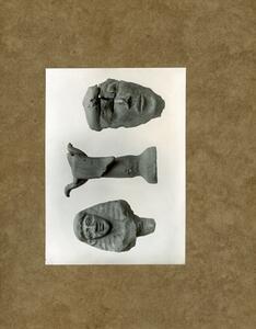 Part of the collection of images, 1924-1927, of the British School at Athens excavations at Sparta, Laconia. The original description in the SPHS register reads: "Sparta, Acropolis 1924-27. Terracottas. Three: two heads, and woman in tree".