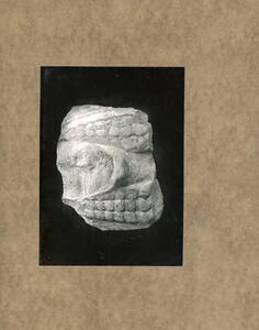 Part of the collection of images, 1906-1910, of the British School at Athens excavations at Sparta, Laconia. The original description in the SPHS register reads: "Sparta, Orthia Site 1906-10. Terracotta protome from large vase, with 'perleufrisum')".