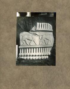 Part of the collection of images, 1924-1927, of the British School at Athens excavations at Sparta, Laconia. The original description in the SPHS register reads: "Sparta, Heroon. Moulded pithoi fragments; large fragment with winged horses".