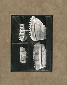 Part of the collection of images, 1924-1927, of the British School at Athens excavations at Sparta, Laconia. The original description in the SPHS register reads: "Sparta, Acropolis (1924-27). Architectural terracottas: four pieces of disc acroterion".