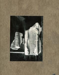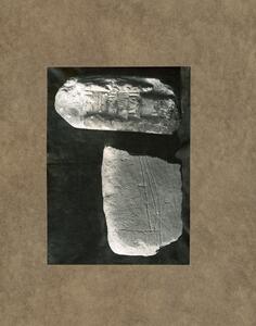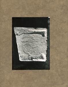Part of the collection of images, 1906-1910, of the British School at Athens excavations at Sparta, Laconia. The original description in the SPHS register reads: "Sparta, Orthia site (1906-10). Limestone slab with drawing of ship, a marble relief of Trophy".