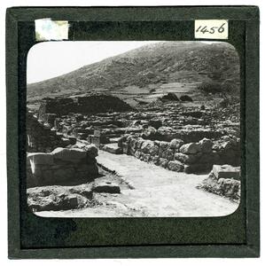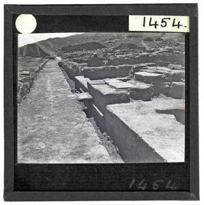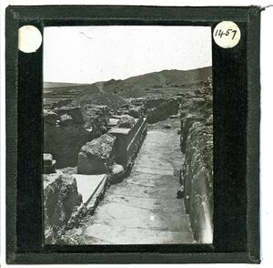 Part of a group of images from the British School at Athens excavations at Palaikastro, Crete in the 1902-1905. The original description in the SPHS negative register reads: "Palaikastro: excavations, side street".