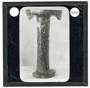 Part of a group of images from the British School at Athens excavations at Palaikastro, Crete in the 1902-1905. The original description in the SPHS negative register reads: "Palaikastro: steatite lamp stand".