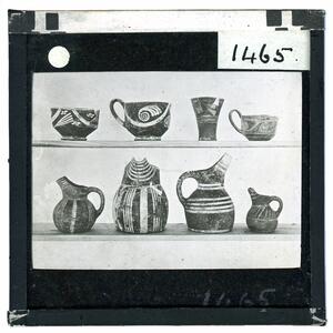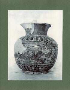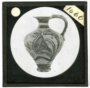 Part of a group of images from the British School at Athens excavations at Palaikastro, Crete in the 1902-1905. The original description in the SPHS negative register reads: "Palaikastro: jug with floral design".
