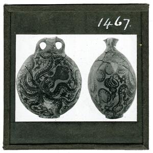 Part of a group of images from the British School at Athens excavations at Palaikastro, Crete in the 1902-1905. The original description in the SPHS negative register reads: "Palaikastro: gourd vase".