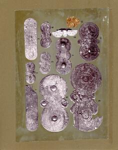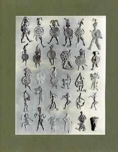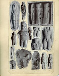 Part of the collection of images, 1906-1910, of the British School at Athens excavations at Sparta, Laconia. The original description in the SPHS register reads: "Sparta: lead figurines, Artemis Orthia pl.183".