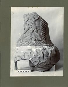 Part of the collection of images, 1906-1910, of the British School at Athens excavations at Sparta, Laconia. The original description in the SPHS register reads: "Sparta: Heroon moulded pithos BSA".