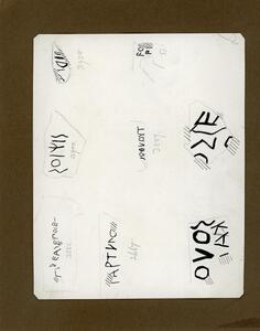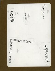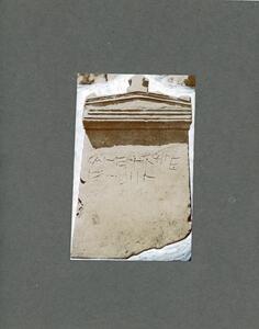 Part of the collection of images, 1924-1927, of the British School at Athens excavations at Sparta, Laconia. The original description in the SPHS register reads: "Sparta 1927, Theatre. Fragments of inscribed architrave (ca. 200 AD)".
