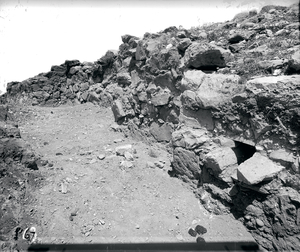 Part of a group of images from explorations and excavations on the island of Melos conducted by the British School at Athens from 1896 to 1899. The original description in the SPHS register reads: "Melos: view of regio III from N. (a) from well E., (b) from W., (c) from S., (d) excav. int. of regio I". Four negatives were assigned the same SPHS negative number, but all the views are different. Recorded in the SPHS register as 4078 (a).