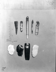 Part of a group of images from explorations and excavations on the island of Melos conducted by the British School at Athens from 1896 to 1899. The original description in the SPHS register reads: "Melos: Phylakopi, obsidian knives".