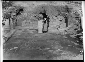 Part of a group of images from explorations and excavations on the island of Melos conducted by the British School at Athens from 1896 to 1899. The original description in the SPHS register reads: "Melos: mosaic, altar end".