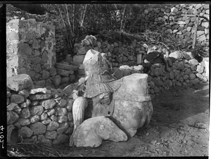 Part of a group of images from explorations and excavations on the island of Melos conducted by the British School at Athens from 1896 to 1899. The original description in the SPHS register reads: "Melos: Klima. Roman equestrian statue".
