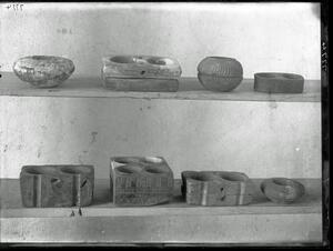 Part of the collection of images, 1906-1910, of the British School at Athens excavations at Sparta, Laconia. The original description in the SPHS register reads: "Sparta: miscellaneous, limestone objects".