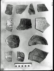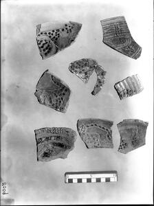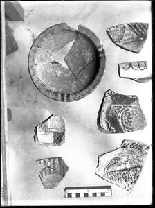 Part of the collection of images, 1906-1910, of the British School at Athens excavations at Sparta, Laconia. The original description in the SPHS register reads: "Sparta: Byzantine pottery".