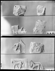 Part of the collection of images, 1906-1910, of the British School at Athens excavations at Sparta, Laconia. The original description in the SPHS register reads: "Sparta: (a) horses (b) horses, Limestone relief".