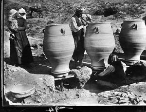 The original description in the SPHS negative register reads:Pediadha: Cretan potter at work".