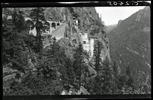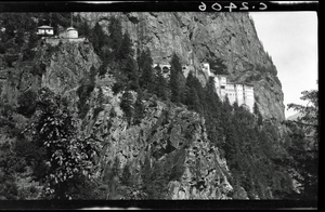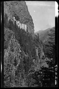 Part of a collection of images from Dawkins' travel to Pontus to investigate dialects in 1914. The original description in the SPHS register reads: "Monastery of Soumela, general view, near Trebizond".