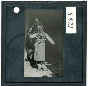 R.M. Dawkins at Carnival in the town of Viza in Thrace in the spring of 1906. Many of the images from his time there record a particular festival in which a masquerade is performed during the course of several days. The original description in the SPHS negative register reads: "Kalogeros at Viza (Cf. J.H.S. xxvi. P.194 fig.3). Mummery play at Viza".