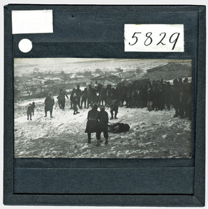 R.M. Dawkins at Carnival in the town of Viza in Thrace in the spring of 1906. Many of the images from his time there record a particular festival in which a masquerade is performed during the course of several days. The original description in the SPHS negative register reads: "Scene from the Mummery play at Viza".