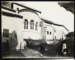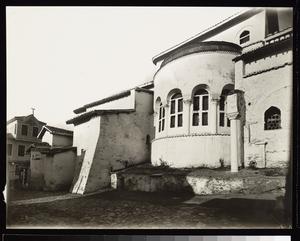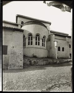 View of the east façade from the south-east. The photograph is stamped at the back:'Copyright Robert W.S. Weir & The Byzantine Research & Publication Fund'. It is initialed 'S.H.B.' in the upper right-hand corner.Further annotation in pencil survives at the back.