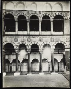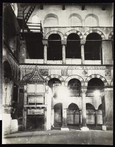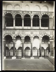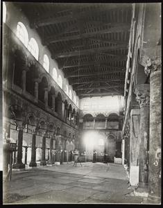 External view fo the gallery over narthex looking west. The photograph is stamped at the back:'Copyright R.W.S.Weir & The Byzantine Research & Publication Fund'. It is initialed 'S.H.B' in pencil in the upper right-hand corner. Further annotation in pencil survives. Taken after the fire on Aug. 23, 1890