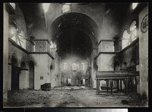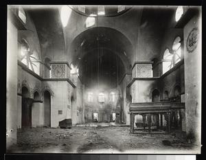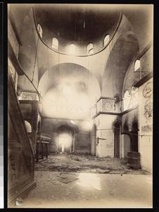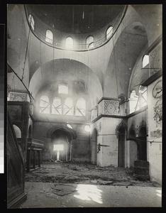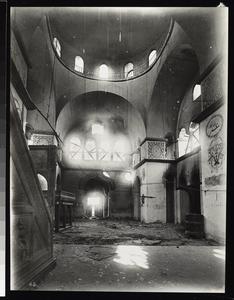 Interior view looking north-east. The photograph is stamped at the back:'Copyright R.W.S.Weir & The Byzantine Research & Publication Fund'. It is initialed 'S.H.B' in pencil in the lower right-hand corner. Further annotation in pencil survives.Taken after the fire on Aug. 23, 1890