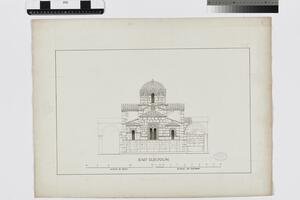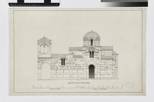 Part of east elevation. This is a preliminary drawing. It is labelled in pencil (S. George Androusa Messenia) in the upper left-hand corner.