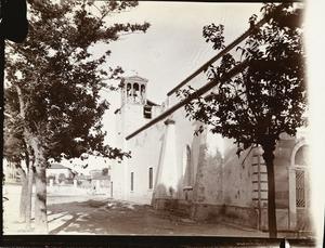 North-east view. The drawing is labelled in ink: 'Areopolis, Hagios Taxiarchos'. It is dated in ink (1909). On the back: Hellenic Society label with the note: 'Lakonia, Medieval Churches: H. Taxiarches, Areopolis, BSA XV p. 189, fig. 3b, R. Traquair'. The name of the church has been mispelled.