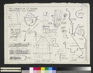 Sketches, Sections and Plans of various architectural members and parts of the building. The drawing is entitled in ink: 'The Church of Sta Sophia at Andravida in Elis Greece'. Further annotation in ink survives.