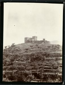 Distant view of the castle. The photograph is annotated in pencil at the back.
