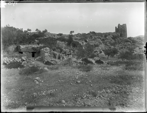 Part of a series of images from the British School at Athens excavations at Aegosthena, led by E.A. Gardner and BSA student, E.F. Benson in 1893. The original description in the SPHS register reads: "Aegosthena: N.W. entrance gate and Tower".