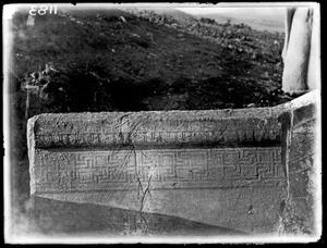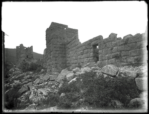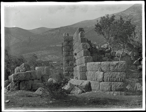 Part of a series of images from the British School at Athens excavations at Aegosthena, led by E.A. Gardner and BSA student, E.F. Benson in 1893. The original description in the SPHS register reads: "Aegosthena: E. wall and postern gate".