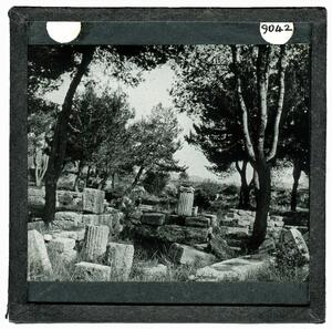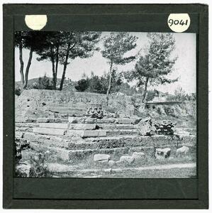The original description in the SPHS register reads: "Epidaurus: general view with ramp ascending to temple on foreground".