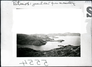 Part of a group of images donated by the Argonaut Camera Club, taken on excursions and cruises in Greece and Asia Minor. The original description in the SPHS register reads: "Patmos: general view from monastery".