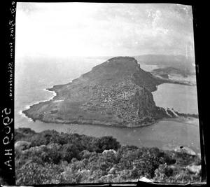 Part of a group of images donated by the Argonaut Camera Club, taken on excursions and cruises in Greece and Asia Minor. The original description in the SPHS register reads: "Pylos from Sphacteria".
