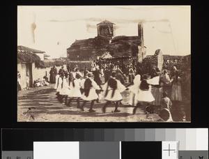 Dancing next to the north side of the church. Further annotation in pencil survives at the back of the photograph.