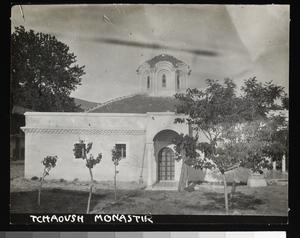 View from the west. The photograph is labelled in white ink: 'Tchaoush Monastir'. It is initialed ('W.H') in the upper right-hand corner. Further annotation in pencil survives at the back of the photograph. See also photo no.: 02/11/13/04 (BRF no. 02/01/07/276).