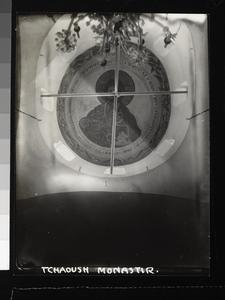 Dome - The Pantokrator. This is a post-byzanine painting. The photograph is labelled in white ink: 'Tchaoush Monastir'. It is initialed ('W.H') in the lower right-hand corner. Further annotation in pencil survives at the back of the photograph. See also photo no.: 02/11/14/01 (BRF no. 02/01/07/277).