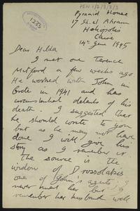 A letter to Hilda [Pendlebury] from the Squire [R W Hutchinson] [PEN/1/2/3/3/4], A letter to Hilda [Pendlebury] from the Squire [R W Hutchinson], [c.Dec 1945-1946]