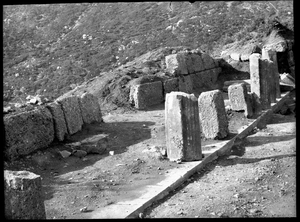 The original description in the SPHS register reads: "Delphi: Substructure of Peribolos & Athenian Stoa. (W.L. Enlargement No. 6)".