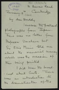 Sent from “Armant camp, Egypt Exploration Society”, Egypt.